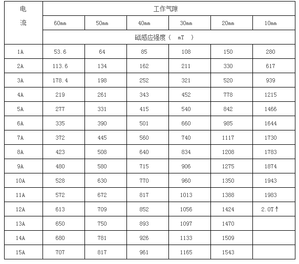 2.3、磁场强度: H≥2T,工作气隙10mm时