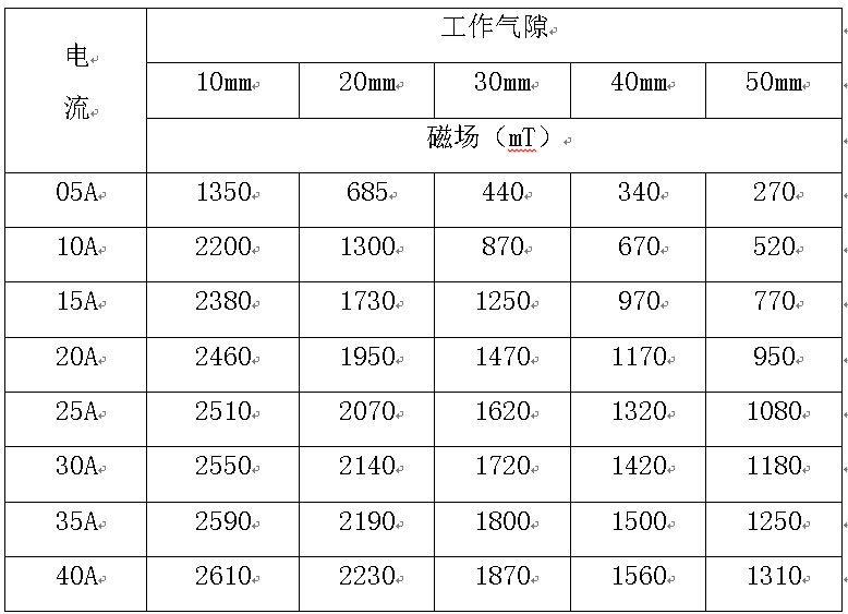 工作气隙40mm时,H≥1.5T